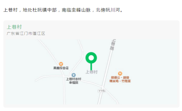 作为国家地理标志产品杜阮凉瓜的核心种植基地,上巷村却一直受困于面积不大,资源不多,经济不发达的尴尬之境。近年来,江门大道、迎宾路先后通车,路通财通,为这个坐落在叱石山风景区脚下默默无闻的小村带来了发展的希望。2019年,乘着乡村振兴的春风,杜阮镇党委政府将上巷村定位为叱石山风景区的旅游配套地。