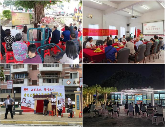 东风社区以粤剧演绎红色故事,弘扬爱国主义精神,联合江门市粤剧传习所举办“曲韵东风 粤情流传——学党史 跟党走 粤韵粤律颂党恩”粤剧表演活动,通过驻村第一书记勇斗黑恶势力的《归来好春光》、党支部书记带领村民脱贫致富的《村官夜访》等粤剧表演,讲新时代党的故事。