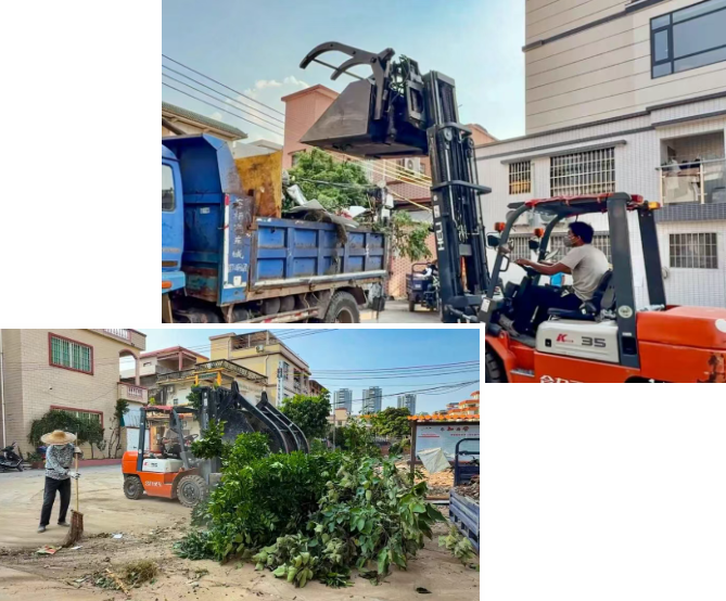 周郡村发动社会力量,协调引入10台钩机、6辆大型运输车及多辆拖拉机、打草机、电锯等“硬设备”助力攻坚行动。