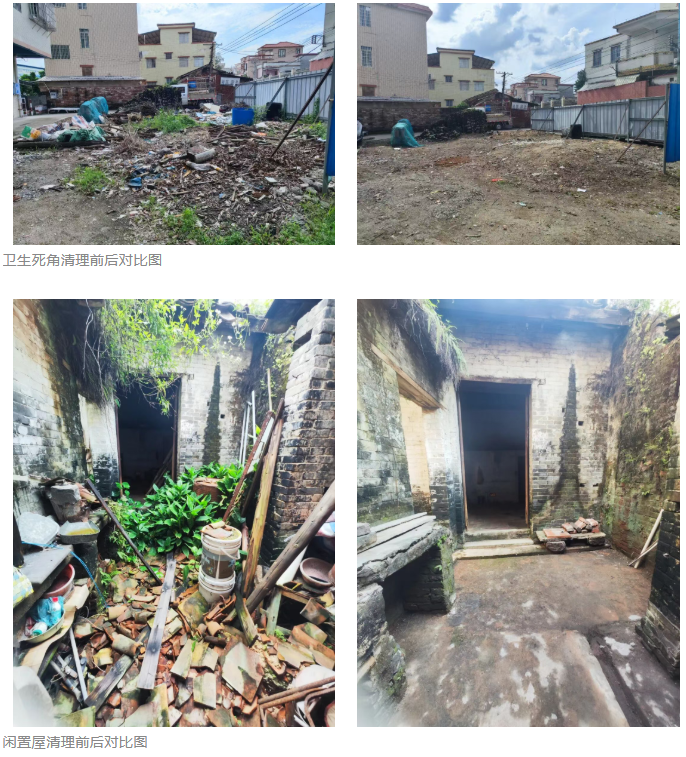 短时间内,周郡村约500个卫生黑点被逐个攻克,133间闲置房屋完成清理工作,23间破旧猪舍被拆除,整治违法养殖禽畜问题20户,为这座兼具红色底蕴与城中村特质的村落,“拆”出了宜居新环境、“腾”出了发展新空间。