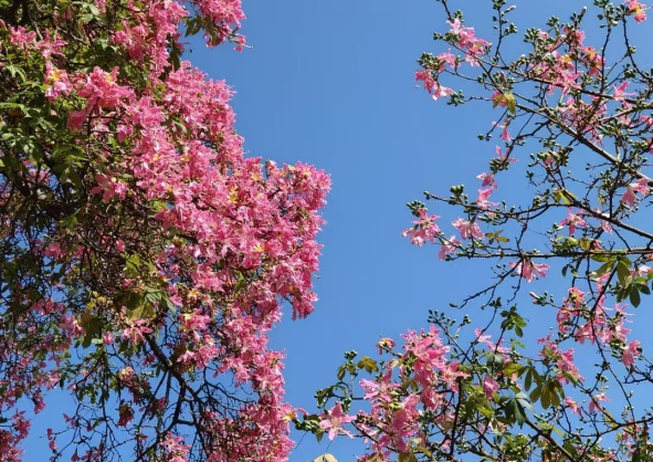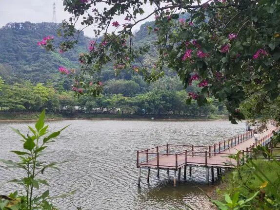 初冬时节,村道两旁的异木棉绚烂绽放,粉色的花影映衬着古厝灰墙,随手一拍,皆是意境。