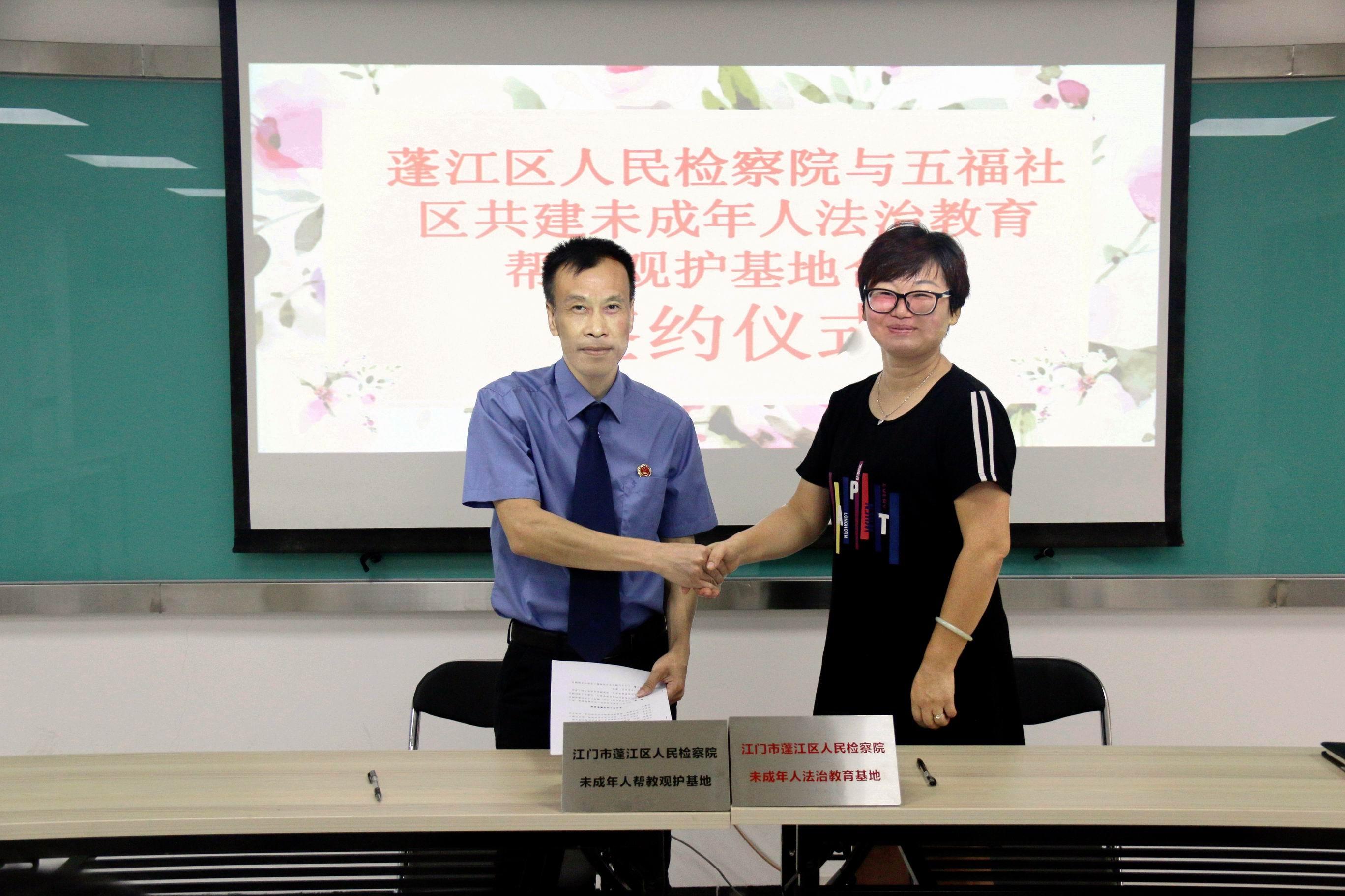 建立学校型观护基地,建立检校联合长效机制。2018年7月6日,蓬江区院与江门市第一职业高级中学举行未成年人法治教育、观护帮教基地签约揭幕仪式,该校领导分别向区剑青副检察长、未检办负责人颁发了法治副校长、法治辅导员聘书。这是蓬江区院设立的首个学校型观护帮教基地,将有力推进检校联合,促进“平安校园”建设。