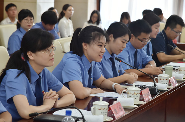 最高人民检察院各厅级单位青年代表、优秀征文作者代表、法律实习生代表参加座谈会。