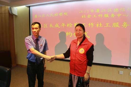 2017年5月,蓬江区人民检察院与江门市蓬江区德信行社会工作服务中心合作,正式启动“法守青春”——蓬江区未成年检察工作社会服务项目,针对未成年人刑事案件中心理辅导、合适成年人参与刑事诉讼、附条件不起诉考察帮教三大板块,以向该中心购买社会服务的方式,依托该中心的人员资源和专业优势,最大限度维护涉案未成年人的合法权益,加强对涉罪未成年人的教育挽救。