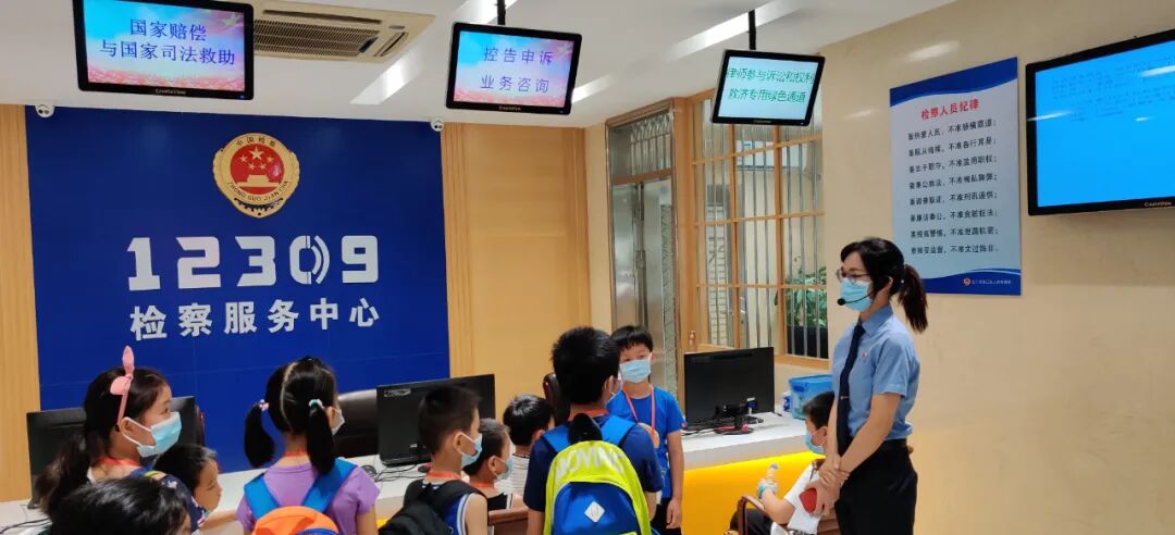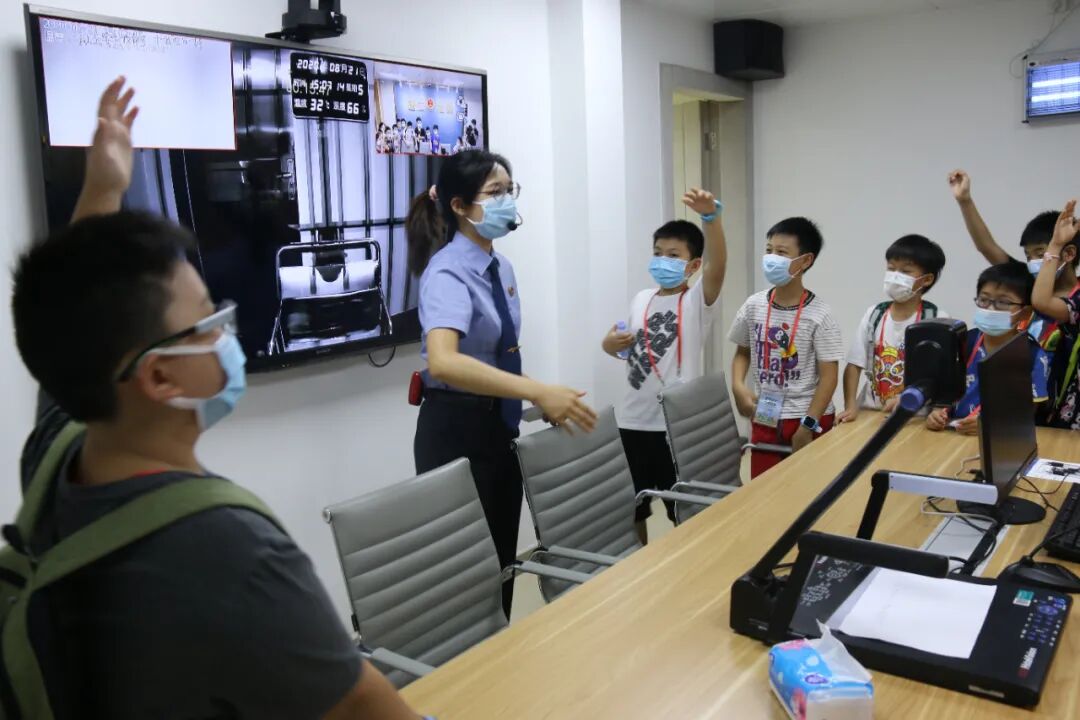 在检察官姐姐的带领下,来自蓬江区辖区初中、小学的20多名学生代表先后参观了12309检察服务中心、未成年人检察工作区、办案工作区等地方,了解检察院的运作,身临其境地认识检察工作。