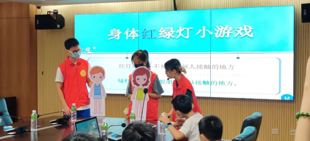 随后,德信行社会工作服务中心的社工跟小朋友们开展“蓓蕾保护”民生座谈会,通过游戏的形式向小朋友们讲述了预防性侵害和远离违法犯罪的相关相识。