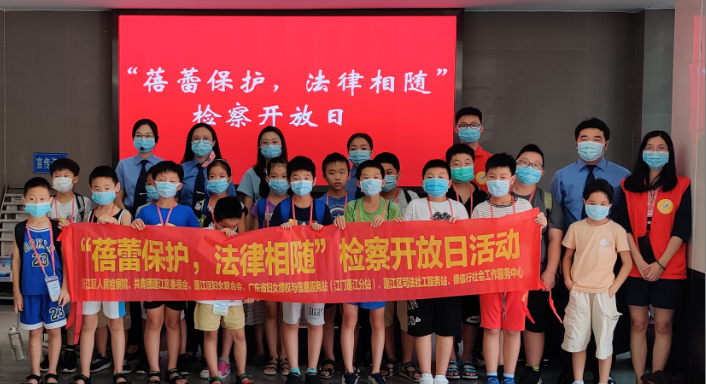 为帮助未成年人树立法律意识,学会自我保护,2020年8月21日,蓬江区人民检察院联合共青团蓬江区委员会、蓬江区妇女联合会、广东省妇女维权与信息服务站(江门蓬江分站)、蓬江区司法社工服务站、江门市蓬江区德信行社会工作服务中心举办“蓓蕾保护,法律相随”检察开放日活动。