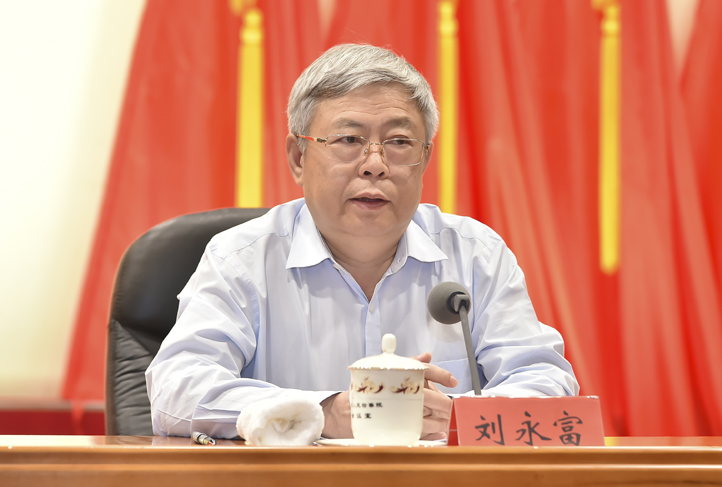 9月6日,最高人民检察院举行党组中心组(扩大)学习专题辅导报告会,最高检党组书记、检察长张军主持会议,邀请国务院扶贫办主任刘永富作专题辅导。程丁?摄
