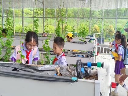 在杜阮凉瓜田园综合体,少年学生们参观了包括凉瓜种植示范区、凉瓜智慧大棚、凉瓜文化长廊、凉瓜主题公园、凉瓜文化展示室、农产品展销中心、农耕文化体验区等与凉瓜相关的景点,近距离观察凉瓜的生长过程、体验田园乐趣,了解杜阮凉瓜的历史与文化。