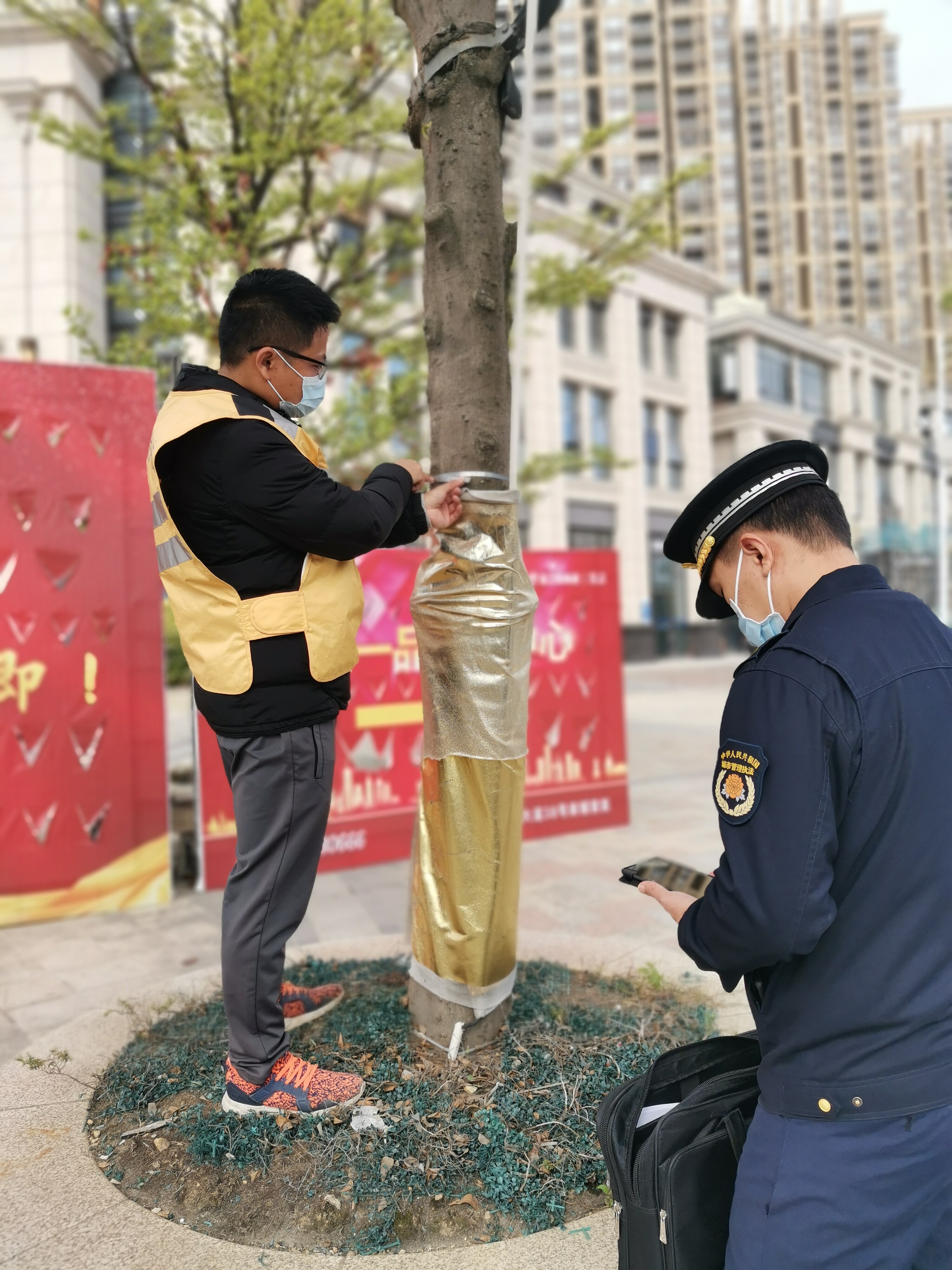 据了解,2021年12月30日,蓬江区城市管理和综合执法局接到市民投诉,反映某物业管理小区东南侧有两棵大树被物业管理公司砍伐,不知道是否经过相关部门审批。蓬江区城市管理和综合执法局执法人员立即前往现场。经查勘,该小区东南侧(原售楼部)的两棵树木的树干被齐根砍伐,树穴内只剩下树根,且该小区物管没有申请办理“砍伐、迁移城市树木行政许可”。
