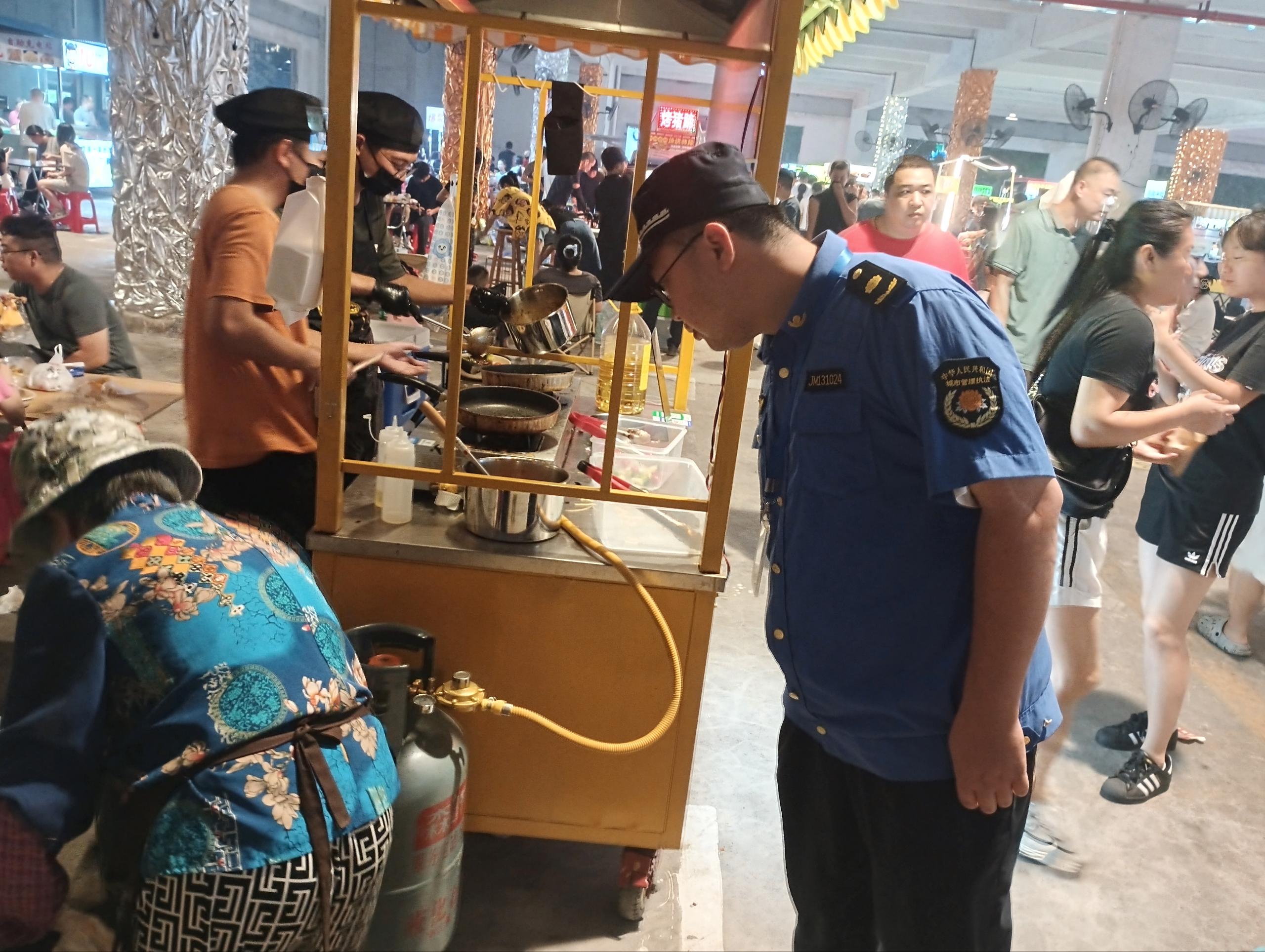 为切实筑牢摩创园夜市运营秩序与群众安全防线,近期,由环市街道办牵头,联动城管、公安、市监、交警、应急、消防等多部门迅速启动专项整治行动。行动中,各部门协同发力,同步推行“定人、定岗、定责、定时”的巡查机制,聚焦夜市周边交通疏导、防撞安全设施完善、环境卫生维护、食品安全监管、消防与燃气安全排查等核心领域开展专项整治,精准破解运营中的各类痛点堵点。