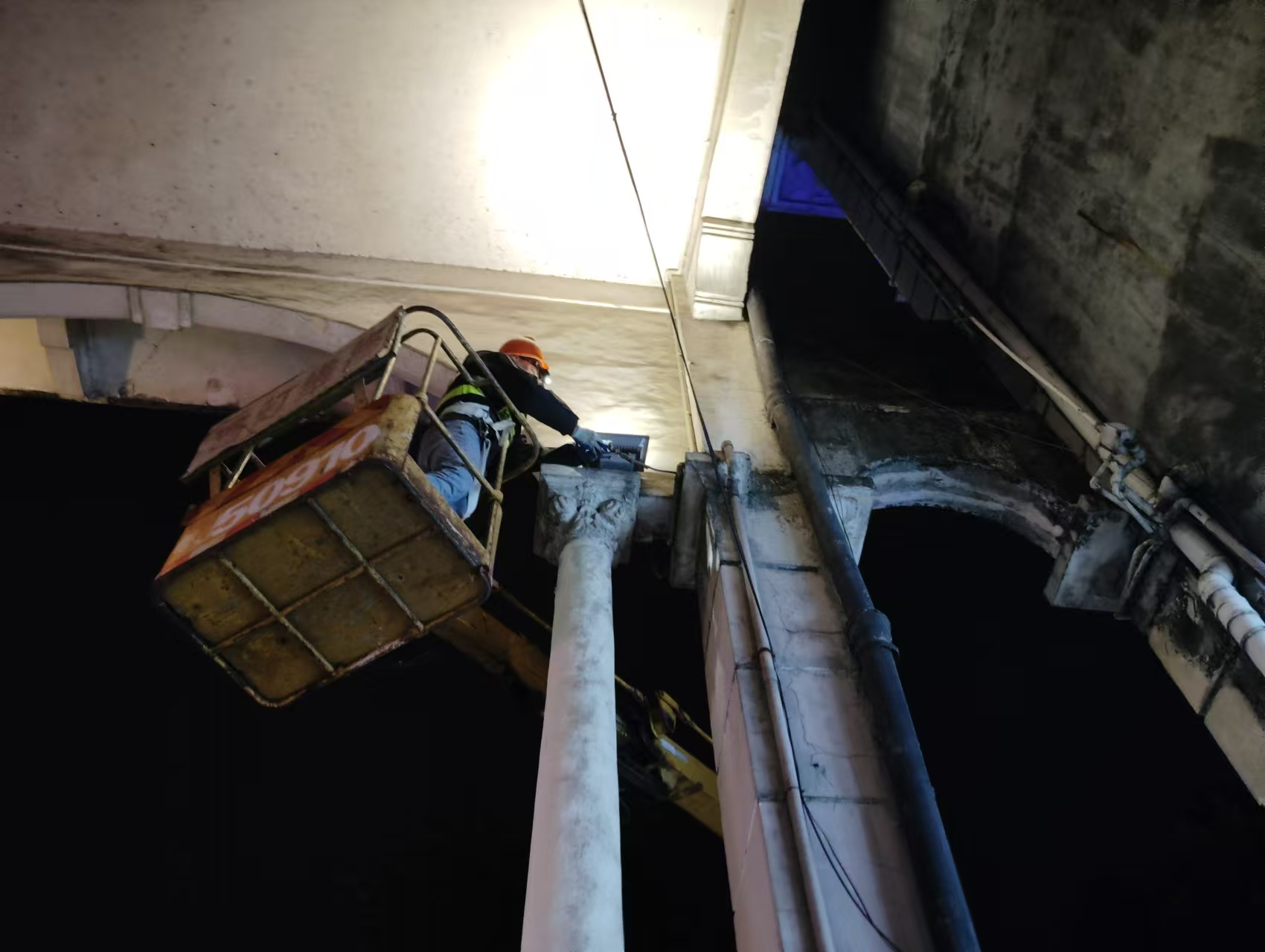 安装挂墙路灯,拆除旧路灯
