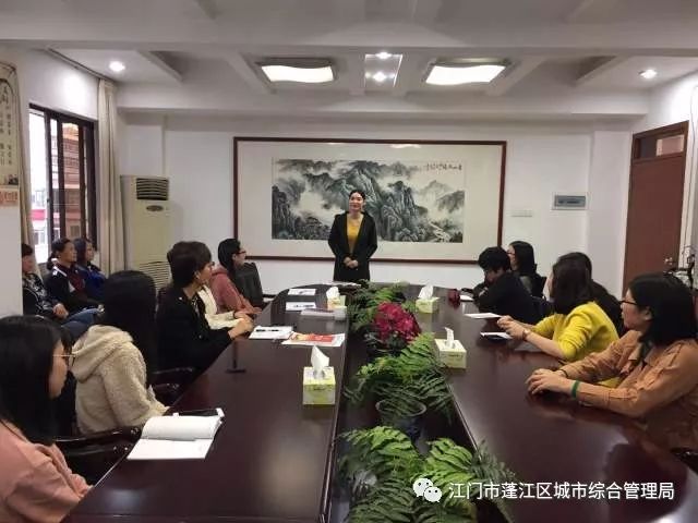 “2017年,我局全体妇女同志在面对“双台风”夹击、深化文明城市、城市“四化”专项行动等艰巨工作任务时,舍小家顾大家,在困难情况下仍然坚守岗位,涌现很多动人的事迹,充分展现了城管女性爱岗敬业的优秀品质,撑起了我局城管事业的半边天。”蓬江区城市综合管理局妇女委员会主任简秀如同志在总结2017年妇女工作时说。