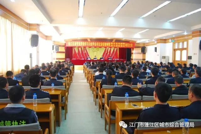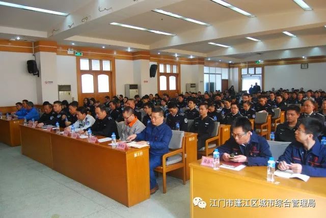 为贯彻落实党的十九大精神,加强党风廉政建设,正风肃纪,全面推进依法行政、公正执法、文明执法、科学执法,加强全体执法人员的纪律作风,规范执法行为,树立良好的城管形象,更好地应对接下来的创文提质工作,3月22日下午,蓬江区城市综合管理局组织城管系统共200余人在环市街道办事处会堂举行了贯彻学习习近平总书记重要讲话精神暨教育管理整顿和创文提质整治动员大会。