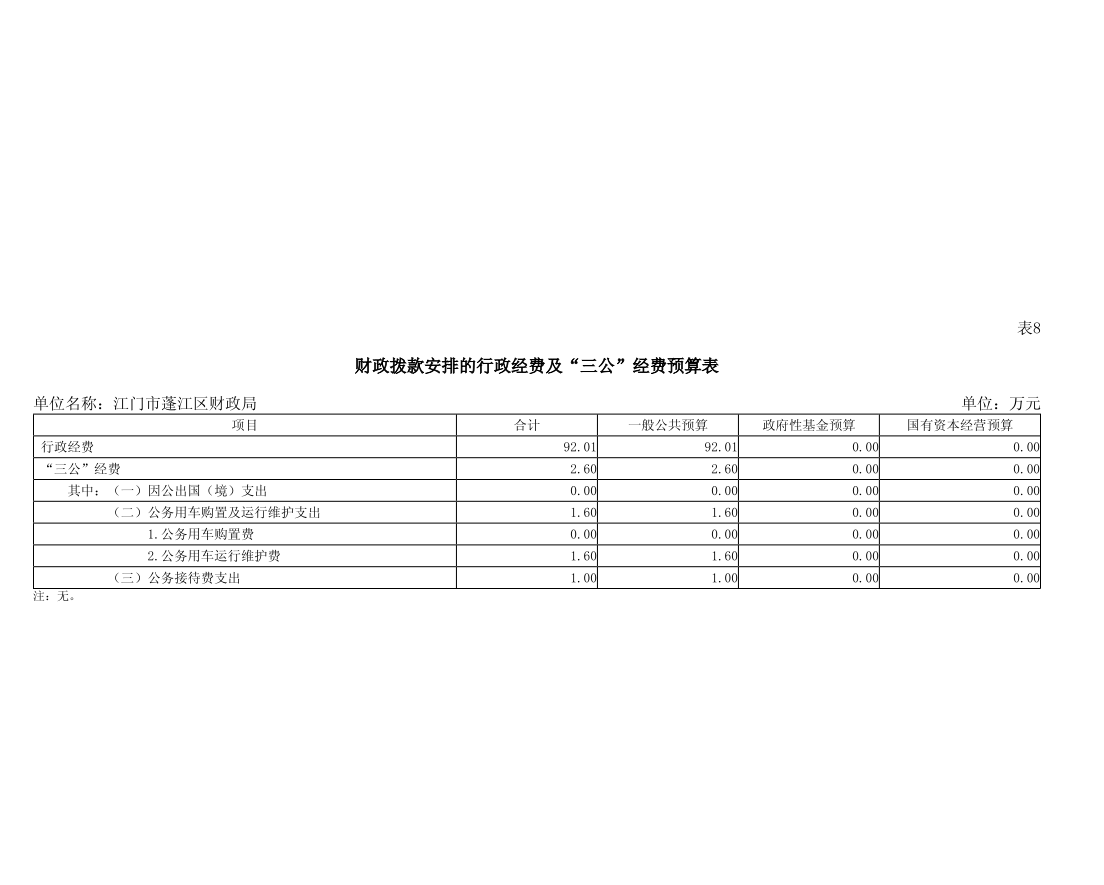 2026年江门市蓬江区财政局三公经费预算公开