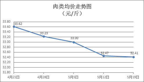 肉类商品价格总体略降。所监测的8种肉类商品价格波动情况为2涨6跌,综合零售均价为每斤32.41元,环比下降0.18%。其中:排骨、有皮上肉、牛肉、带骨羊肉零售均价分别为每斤29.39元、14.24元、48.23元、42.97元,环比分别上涨0.38%、下降0.56%、下降0.49%、下降0.14%。