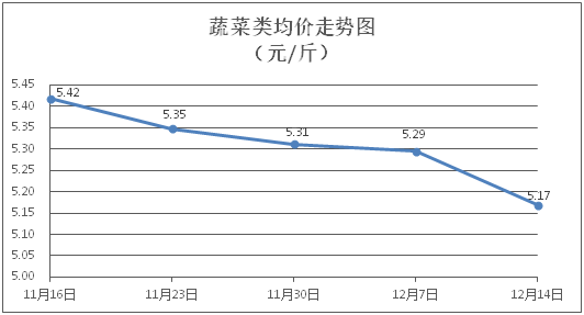 蔬菜类商品价格以降为主。所监测的蔬菜商品价格波动情况为8涨23跌1平,综合零售均价为每斤5.17元,环比下降2.37%。其中:涨幅居前的品种包括西红柿、茄子、水空心菜,零售均价分别为每斤6.48元、5.33元、4.98元,环比分别上涨6.93%、2.50%、1.43%;跌幅靠前的品种为菠菜、莴笋、水东芥菜,零售均价分别为每斤7.04元、4.42元、4.23元,环比分别下降12.22%、9.98%、9.81%。