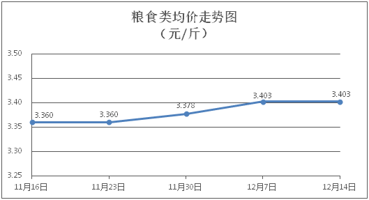 粮食类商品价格保持稳定。所监测的4种粮食类商品价格均持平,综合零售均价为每斤3.403元。其中:丝苗米、面粉零售均价分别为每斤3.54元、3.34元,环比均持平。