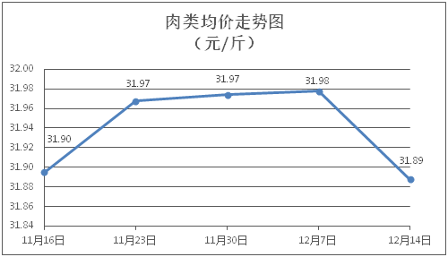 肉类商品价格总体略降。所监测的肉类商品价格波动情况为3涨5跌,综合零售均价为每斤31.89元,环比下降0.28%。其中:排骨、精瘦肉、牛肉、带骨羊肉零售均价分别为每斤29.64元、18.19元、47.04元、41.37元,环比分别下降0.97%、下降0.33%、上涨0.02%、上涨0.10%。
