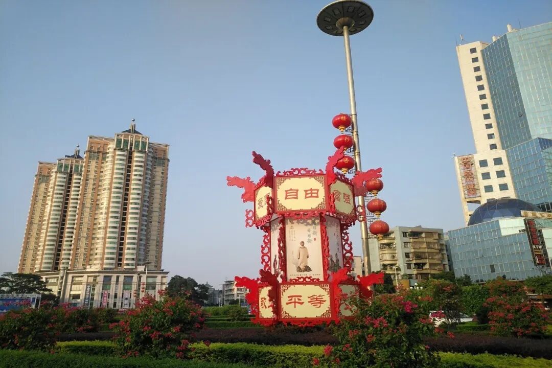 在江门显著地方摆设东艺宫灯,将社会主义核心价值观融入宫灯,起到公益和非遗文化宣传的效果。