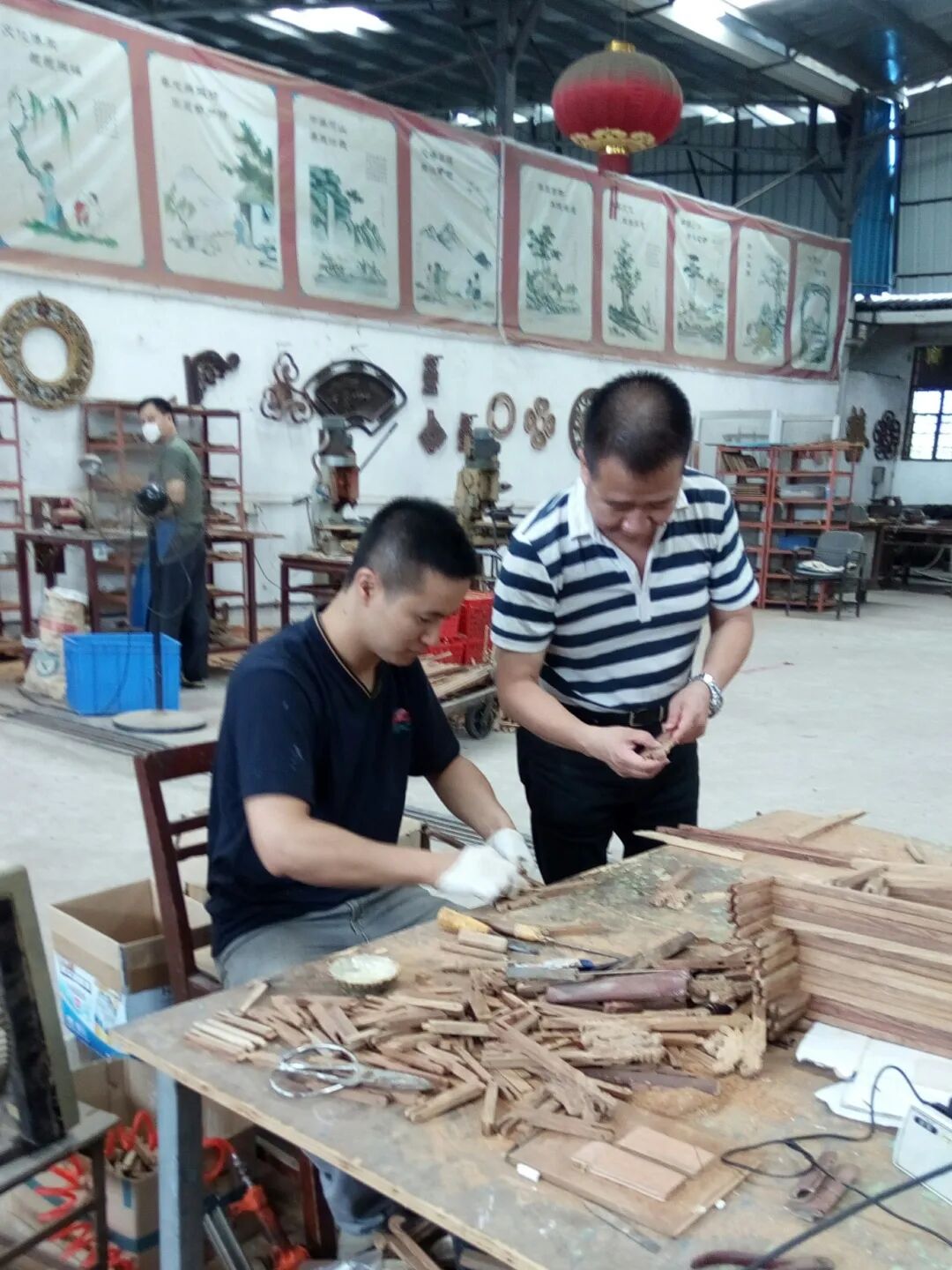 省级传承人李仰东在指导学徒进行宫灯技艺制作。