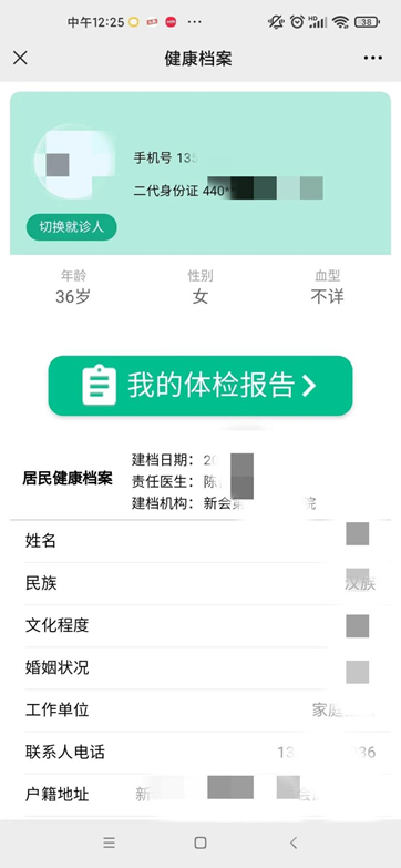(3)返回微信主页,点击“健康档案查询”,即可显示您的居民电子健康档案。