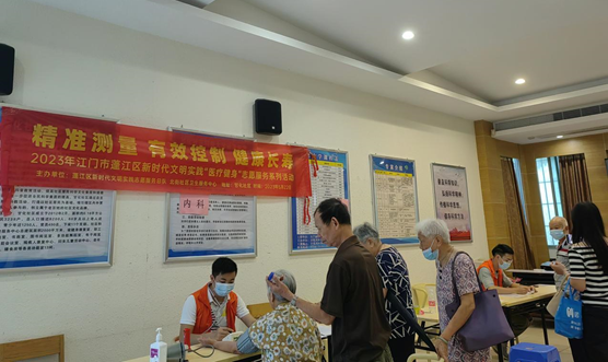 在第19个“世界高血压日”来临之际,为进一步提高居民高血压防治意识,5月22日上午,蓬江区卫生健康局联合蓬江区新时代文明实践志愿服务总队、北街社区卫生服务中心在甘化社区举办以“精准测量 有效控制 健康长寿”为主题的新时代文明实践“医疗健身”专题义诊活动。