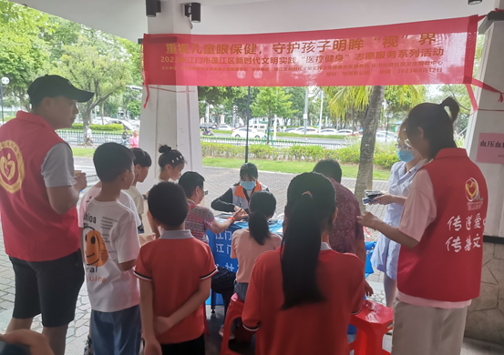 为在全社会形成重视儿童眼健康的良好氛围,持续推进综合防控儿童青少年近视工作落实,近日,蓬江区新时代文明实践志愿服务总队、蓬江区新时代文明实践卫生健康志愿服务队联合环市街道社区卫生服务中心在怡居苑公园开展“医疗健康”志愿服务活动,活动主要围绕“重视儿童眼保健,守护孩子明眸‘视’界”为主题开展义诊。