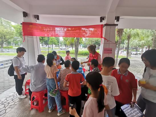 活动现场,保健医师及志愿者们以通俗易懂的方式向家长及孩子们详细讲解了暑期护眼攻略、如何科学用眼、如何预防近视等知识,引导孩子自觉爱眼护眼,养成良好的用眼习惯,日常增加自然光条件下户外活动时间,控制和减少对电子产品的使用,主动做眼保健操,每日补充营养素,定期给眼睛“放放假”。在当天的义诊活动中,到场的家长和孩子们积极参与互动,保健医生还为高血压患者进行了免费血压测量,发放了高血压防治手册等宣传资料。