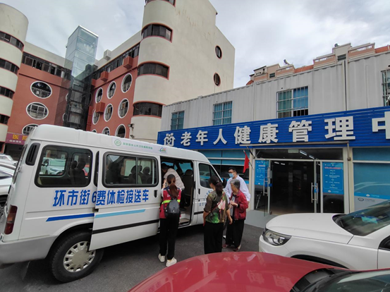 73岁的黄大爷是育德社区居民,他说一大早,环市街道社区卫生服务中心的工作人员就组织送他们过来了,对他们很是照顾。体检中,有专门的志愿者引导,感觉十分暖心。环市街道社区卫生服务中心考虑到老年人腿脚不便,自行前往医疗机构参加健康体检有困难,推出了健康车免费接送服务,与村(居)委会通力合作,村(居)委会负责发动集中符合条件的老人,环市街道社区卫生服务中心安排健康车将老人们接到医疗机构进行健康体检。