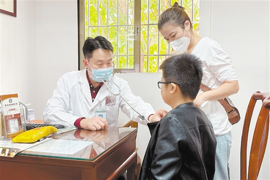 “感染支原体,需要服用阿奇霉素治疗。”蓬江区北街社区卫生服务中心门诊部主任柴选文边说边拿出听诊器为患儿听诊。