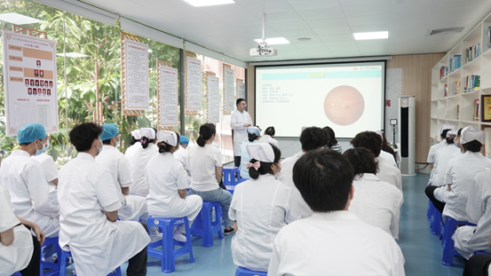 今年的6月6日是第29个全国“爱眼日”,为深入贯彻党的二十大精神,充分发挥党建引领作用,推动党建与业务相融合相促进,助力“百千万工程”高质量发展,普及全民健康用眼科学知识,提高人民群众爱眼、护眼意识,6月6日,蓬江区卫生健康局联合中山大学中山眼科中心,开展“党建领航、共筑睛彩”主题党日活动,特邀请该中心6名专家在江门市第二人民医院举行“全国爱眼日”公益义诊活动。