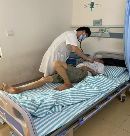 怀揣着一腔热血,黄福昌积极参与蓬江区—天等县粤桂东西部协作工作。他在天等县中医医院呼吸内科进行临床工作,承担日常查房与病历质控任务。在工作中,黄福昌对急危重症患者的病情提出针对性意见,并按照病历规范来指导病历书写,定期开展专业培训和学术交流活动,有效提高当地医院医疗服务水平。