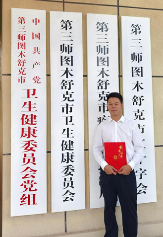 7月,甄健斌带领监测队伍,先后对第三师50家公共场所完成了室内空气质量、公共卫生用品等样本的采集和检测工作,顺利完成监测任务。8月16日,第三师图木舒克市卫生健康委员会为甄健斌颁发“优秀卫生健康工作者”荣誉证书。