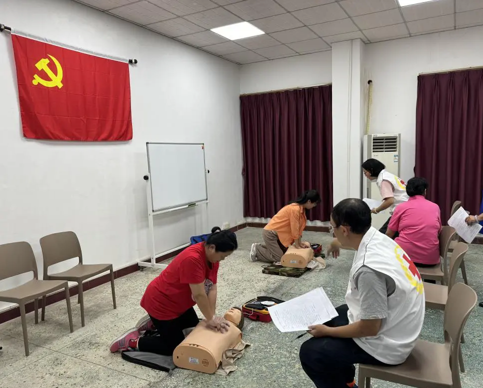 此次培训班精心设计了丰富而实用的内容,涵盖了心肺复苏技术、自动体外除颤器(AED)的操作方法、创伤救护处理以及如何应对常见的急症情况等多方面知识点。培训采用理论与实践相结合的方式进行,既保证了学员能够系统地学习相关理论知识,又能通过现场演练加深理解和记忆,确保每位参与者都能真正学到实用技能。