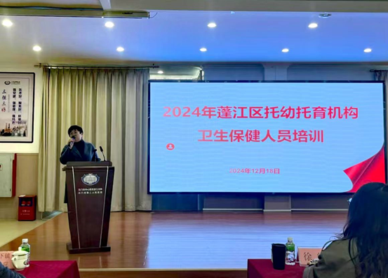 为深入贯彻国家基本公共卫生服务项目要求,切实提升辖区托幼(托育)机构卫生保健人员业务水平,蓬江区卫生健康局积极作为,定期组织辖区内托幼(托育)机构的园长、老师和卫生保健人员等200多名托育从业人员开展各类专业培训,邀请专家讲授托育政策与规范标准、托育职业道德与服务理念、卫生保健与传染病防控工作要求、应急处突技能与防暴设备设施配备要求、消防安全工作要求等方面知识,让托育服务人员扎实掌握专业知识。同时,儿童保健医生通过开展新生儿上门访视、定期随访和指导,提供婴幼儿健康评估与咨询、育儿知识培训、家庭环境评估与改善建议、心理支持和咨询服务等。