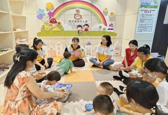 2024年,蓬江区卫生健康局推行“托育无忧”公益行动,联合中国人寿保险股份有限公司江门分公司开展在托婴幼儿意外保险公益行动。项目推行至今,已成功为辖区符合条件的400多名在托3岁以下幼儿配置意外责任保险。同时,积极推进白沙街道雅怡社区“向日葵亲子小屋”国家级示范点,为社区内的居民免费提供各类公益普惠托育服务,如托育体验、育儿指导、公益讲座等,增强居民对托育服务的信任感和获得感,提高送托意愿。截至2024年底,“向日葵亲子小屋”公益项目已组织开展亲子活动20余次、公益早教活动5期,累计服务家长及婴幼儿1000余人次,让居民群众在家门口共享优质科学育儿服务。