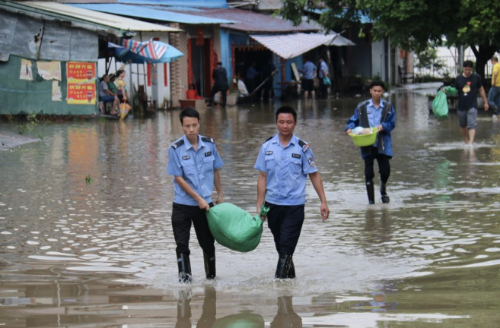 荷塘义警参加抗洪抢险工作