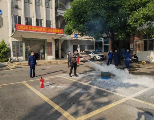 演练结束后,由消防队员详细讲解、演示干粉灭火器的操作使用,并组织逐人实操考核。从考核情况来看,大部分同志基本能掌握干粉灭火器的操作使用,但灭火时应在上风口1.5米至2米处对准火源根部进行扫射灭火的操作要求,仍需加强训练。