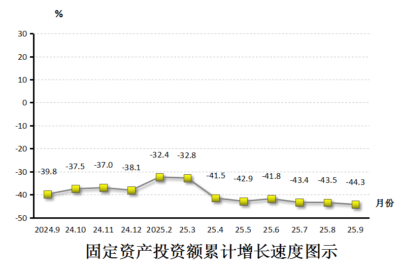 前三季度,全区完成固定资产投资下降44.3%。其中,国有投资下降27.7%,民间投资下降37.4%,港澳台商及外商投资下降60.5%;分产业看,第二产业投资下降40.3%,其中制造业投资下降43.6%;第三产业投资下降47.6%。