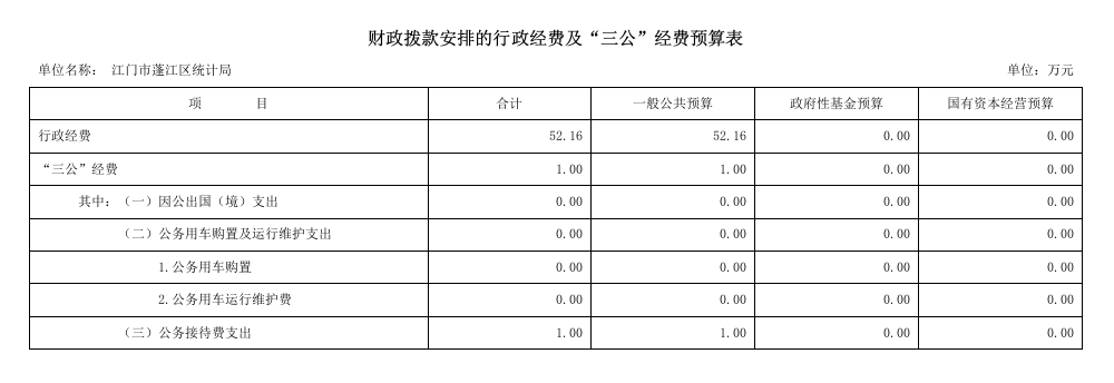 | 名称: | 2026年江门市蓬江区统计局“三公”经费预算公开 | ||