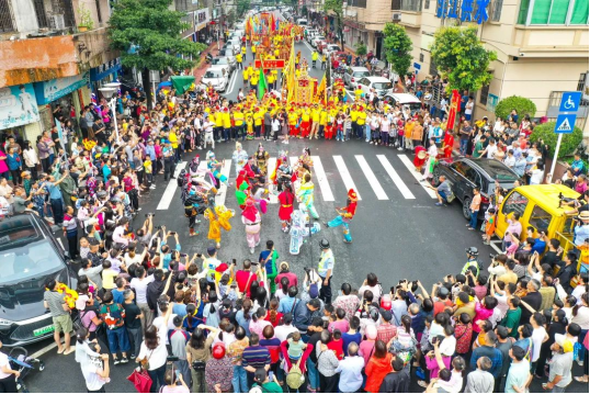 五一假期第一天正值农历三月廿三——天后诞。在蓬江区棠下镇,除了沿街举办的天后庙会庆诞巡游活动外,还有精彩的文艺表演接连数日在陈垣文化广场上演,丰富了各方游客朋友的游玩体验。