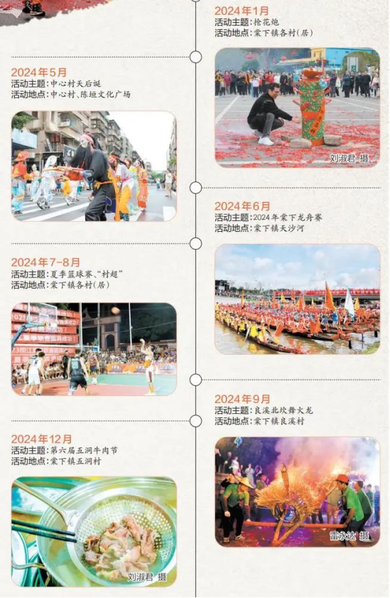 “棠下镇历史悠久,其中良溪村更是有着近900年历史。我们该如何整合这些宝贵的文化财富,让历史文脉‘活’起来,这是今年的重要课题之一。”棠下镇相关负责人介绍,今年以来,棠下镇在坚持工业经济“硬支撑”的前提下,积极发挥文化“软实力”,结合我市推出的“江门3.3精彩之旅”品牌,精心策划培育了系列文旅项目,助力“江门3.3精彩之旅”品牌建设,促进传统民俗与现代生活的融合,助推乡村文化振兴。