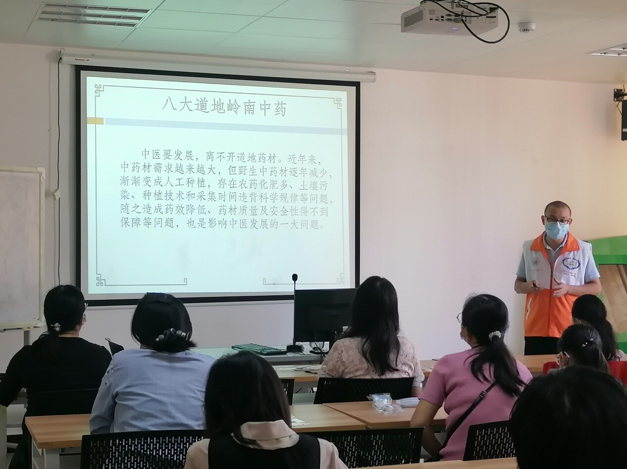 本次讲座主题围绕“弘扬中医药文化 普及中医药知识”开展,并邀请了江门市第二人民医院副主任医师闵文峰作为讲师。闵主任采用“讲故事+分享+体验”的互动方式进行讲座,在故事中让参与者了解中国古代名中医人物以及他们的典故,在分享中让参与者学习道地岭南中药材以及辨识,在体验中让参与者了解蜂疗、艾灸、针灸等传统中医治疗手段,全方位感受传统的中医魅力。