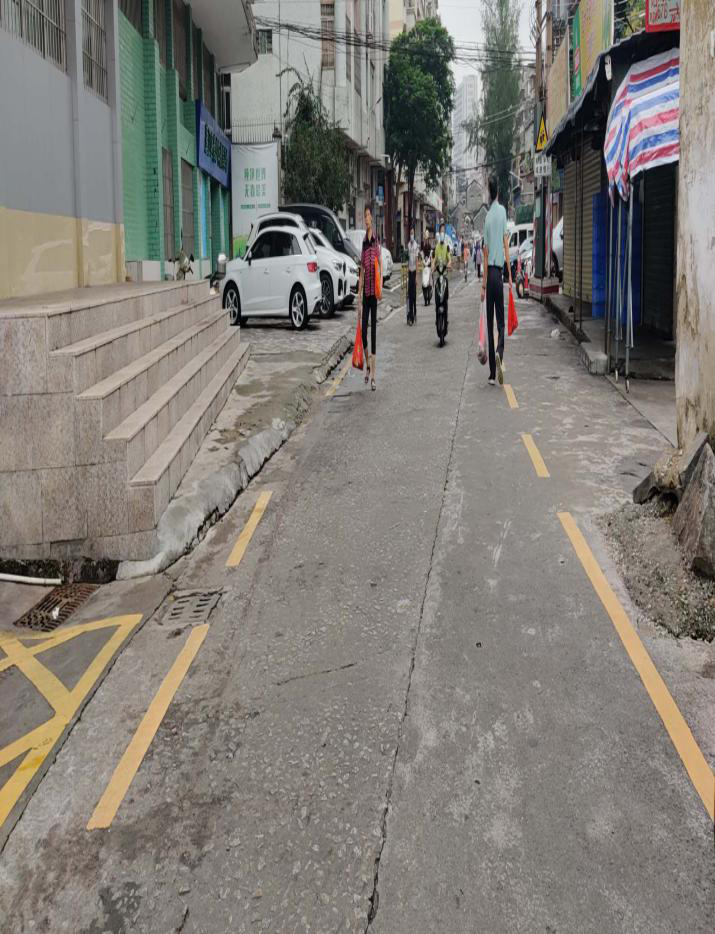 东观路位于迦南社区,建于80年代,是蓬江区典型的背街小巷之一。近年来,东观路路面相继出现路面积水、坑洼不平、停车位划分不规范等一系列问题。东观路作为迦南社区居民的主要通道,以及江门市第八中学学生的必经之路,长期影响社区居民的生活与出行,居民要求改造的呼声非常强烈。