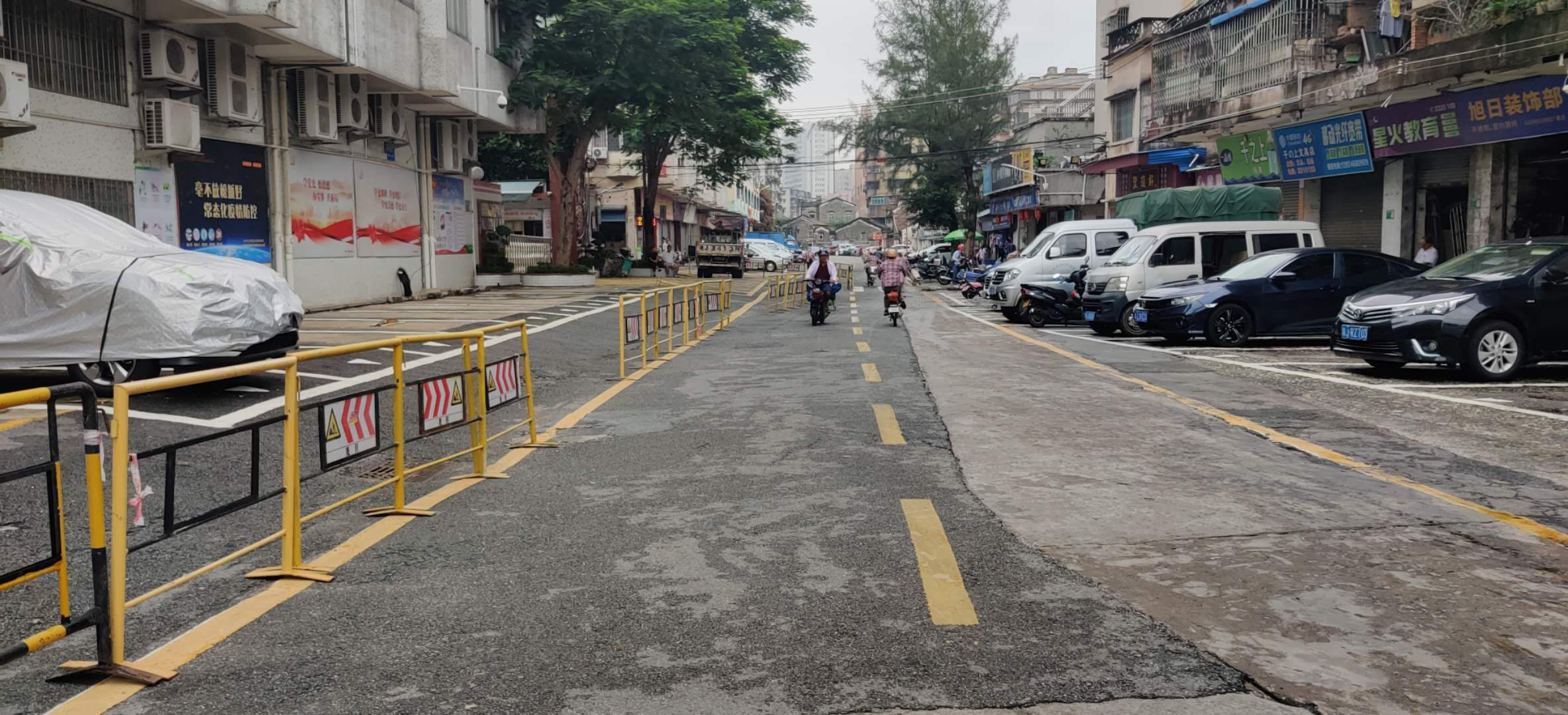 截至目前,蓬江区城市管理和综合执法局对东观路进行“白改黑”改造工程共6848平方米,重新铺设排水管道180米、重新铺设人行道400平方米,修复及更换照明设施15盏,重新规划和整理停车位74个(汽车位48个,摩托车位26个),真正实现人车分流。