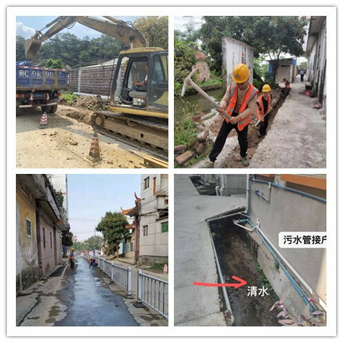 “施工人员沿着各自然村内道路开挖建设污水管道,来自村民的厨房、卫生间等的污水统一收集至一体化污水处理设施净化后接入市政管网,最终进入棠下污水厂。”区城管局相关负责人说。
