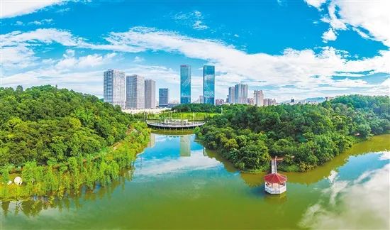 △蓬江城碧水蓝天,绿树环绕。彭伟宗 摄