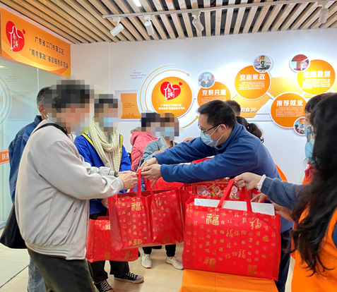 在新春佳节来临之际,为了给困难人员送去关爱和温暖,营造和谐温馨的节日氛围。1月26日,江门市蓬江区人社局联合蓬江区“南粤家政”基层服务示范站开展“迎新春送温暖”南粤家政春节慰问活动,为蓬江区30多名困难人员送上慰问物资和新春问候。