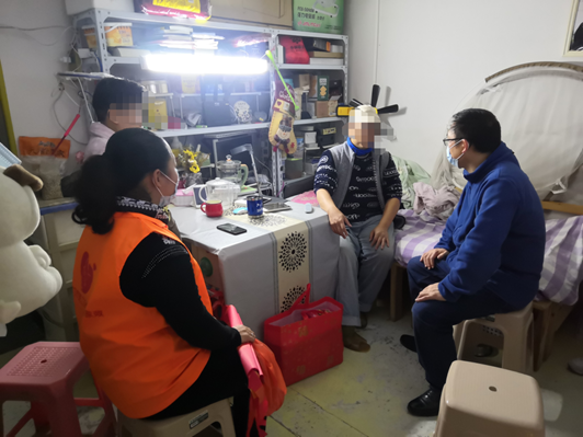 活动伊始,江门市蓬江区人社局同志在蓬江区“南粤家政”基层服务示范站为8名困难人员送上慰问品和新春祝福,并亲切询问他们的身体健康状况和生活情况,让困难人员感受到暖心的关怀和欢乐的节日气氛。随后,江门市蓬江区人社局同志以及蓬江区“南粤家政”基层服务示范站工作人员分组进行入户慰问,把新春慰问品送到困难人员手中,并与困难人员进行亲切交谈。